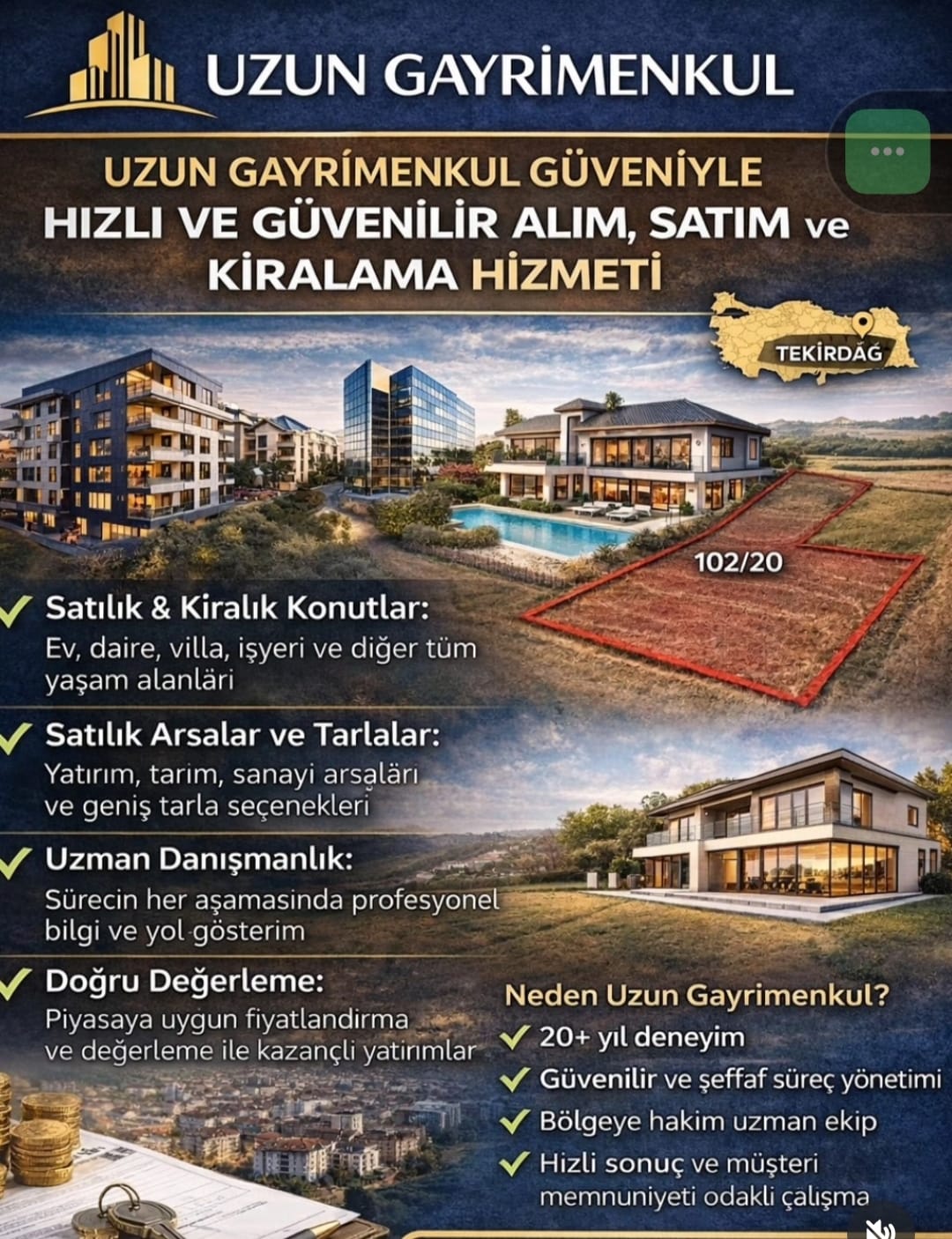 Merhaba, UZUNGYO&ŞEHİR VE HARİTA PLANLAMA OFİSİ olarak, gayrimenkul alanında uzmanlaşmış bir ekibiz.